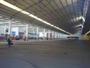 Usoudili jsme, že toto stanoviště musí být nějak nelegální a dostupné jen zasvěceným. Na mapách je jen tečka v místech, kde je stanice metra. Chybí jakékoliv značení, jak se k autobusům dostat, a když už tuto “lisabonskou Florenc” najdete, tak zjistíte, že vypadá jako garáže nějakého servisu. Žádná nástupiště, terminály, atd. Prostě jen velká vybetonovaná hala z vlnitých plechů, kam doufáte, že přijede nějaký autobus.